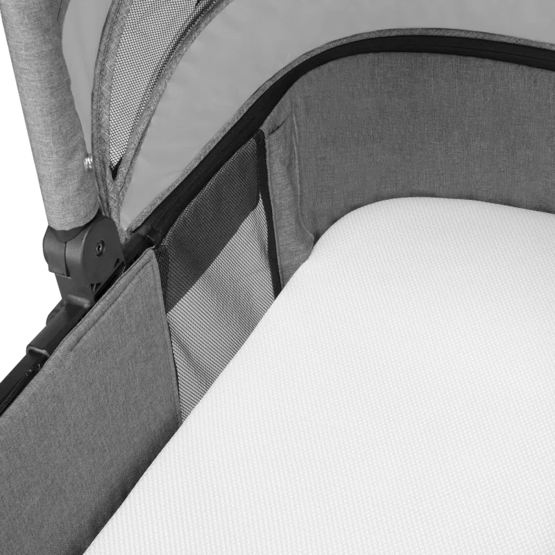 Plašs šūpulis ar ērtu matraci.Mīksts matracis ar atbilstoša biezuma kokvilnas pārvalku. Šūpuli var viegli un ātri salocīt līdz kompaktam izmēram.Ērta tīrīšana – iekšējo materiālu pietiek noslaucīt ar mitru drānu, bet matrača pārvalku var noņemt un izmazgāt.Šūpulim ir ērta kabata viedtālrunim.Pagarināts jumtiņš ar logu - nodrošina bērnam komfortu un aizsargā no lietus, vēja un saules. Aizmugurējā šūpuļa daļā esošais logs nodrošina atbilstošu ventilāciju.Vienmērīga ventilācija – gondolas sānos ir speciālas ventilācijas plāksnes, kas nodrošina pietiekamu gaisa cirkulāciju.Ergonomisks rokturis ļauj viegli nest bērnu šūpulī.