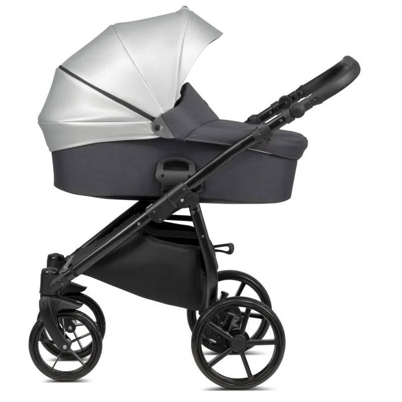 Komfortabla sēžamā daļa ar horizontālu gulēšanas pozīciju.Sēžamās daļas pozīcijas maiņa.Sēžamās daļas salikšana ar šasiju.Jumtiņš ar iebūvētu tīkliņu-ventilāciju.5 punktu drošības jostas.Regulējama augstuma eko-ādas kāju balsts.