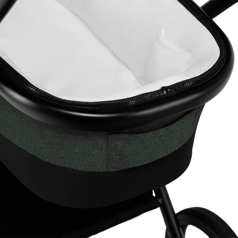 Plašs šūpulis ar ērtu matraci.Mīksts matracis ar kokvilnas pārvalku ir piemērota biezuma.Jumtiņš ar logu un UPF 50+ filtru - aizsargā no lietus, vēja un saules. Tīkliņš šūpuļa aizmugurē nodrošina pietiekamu ventilāciju.Nēsāšanas funkcija – ergonomisks rokturis ļauj viegli nest bērnu šūpulī.Šūpuli var viegli salocīt plakani.Ērta tīrīšana – materiālu pietiek noslaucīt ar mitru drānu, bet matrača pārvalku var noņemt un mazgāt veļas mašīnā.Šūpulis paredzēts bērniem līdz 9kg.