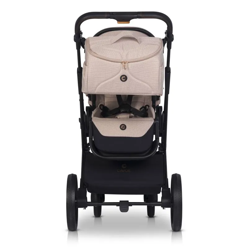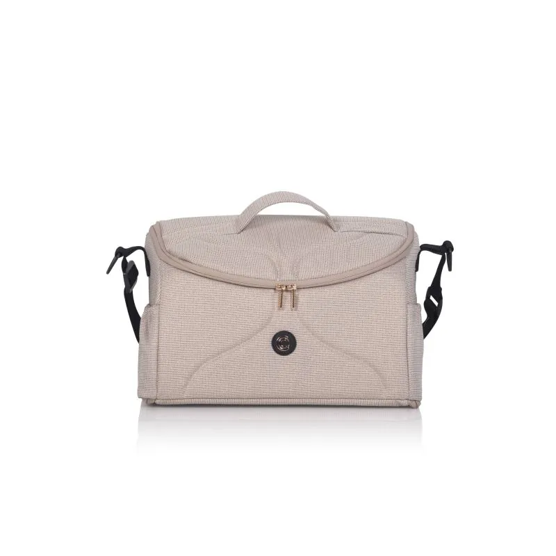 Profesionāla soma ar stiprinājuma sistēmu, kas pilnībā izvērsta kalpo arī kā praktisks bērnu pārtīšanas paklājiņš.Somas var izmantot neatkarīgi no ratiņiem, pateicoties plecu siksnai.Tās izgatavošanai tika izmantoti tie paši audumi, no kuriem izgatavoti ratiņi.