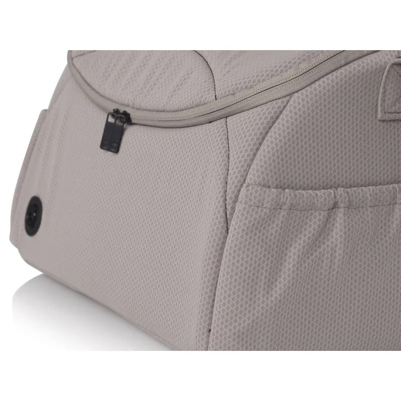 Profesionāla soma ar stiprinājuma sistēmu, kas pilnībā izvērsta kalpo arī kā praktisks bērna pārtīšanas paklājiņš.Somas var izmantot neatkarīgi no ratiņiem, pateicoties plecu siksnai.Tās ražošanā tika izmantoti tie paši audumi, no kuriem izgatavoti ratiņi.