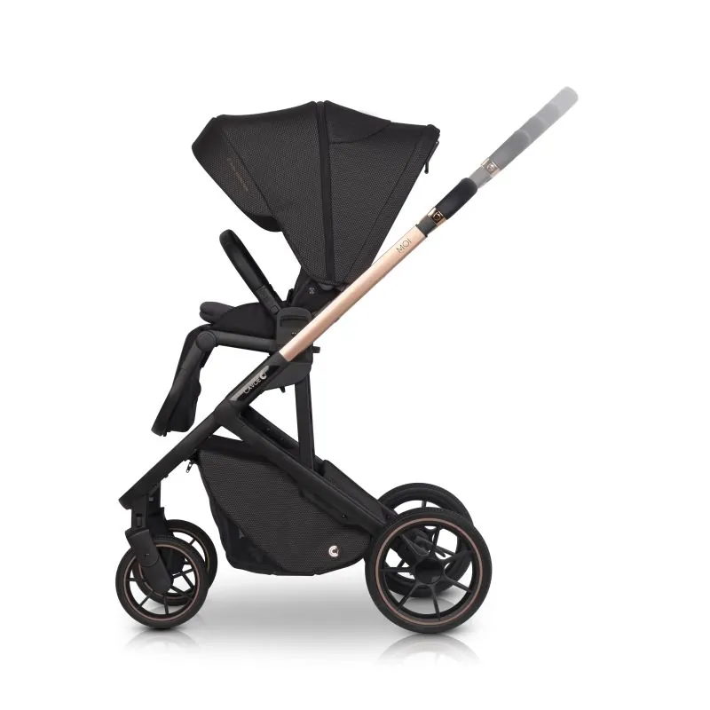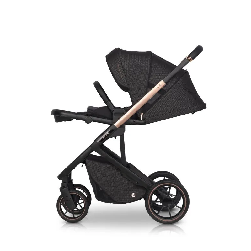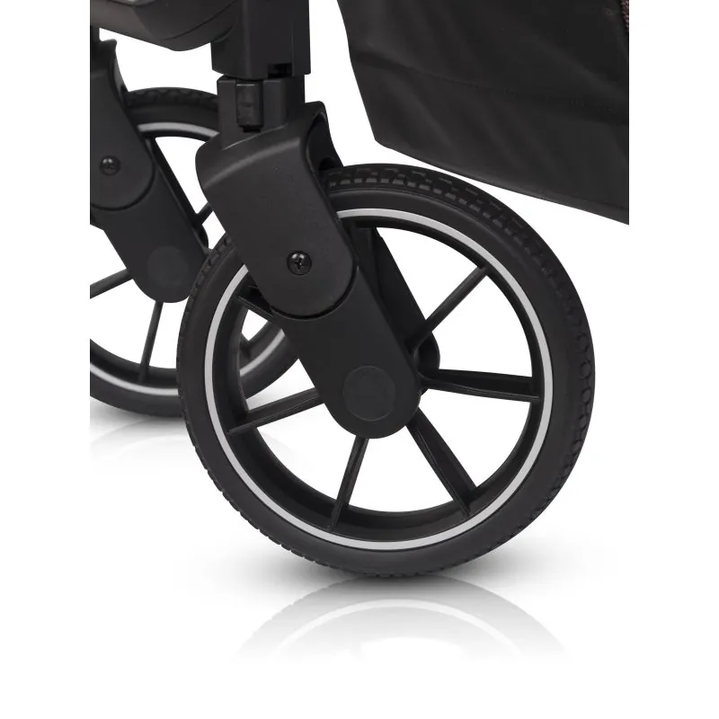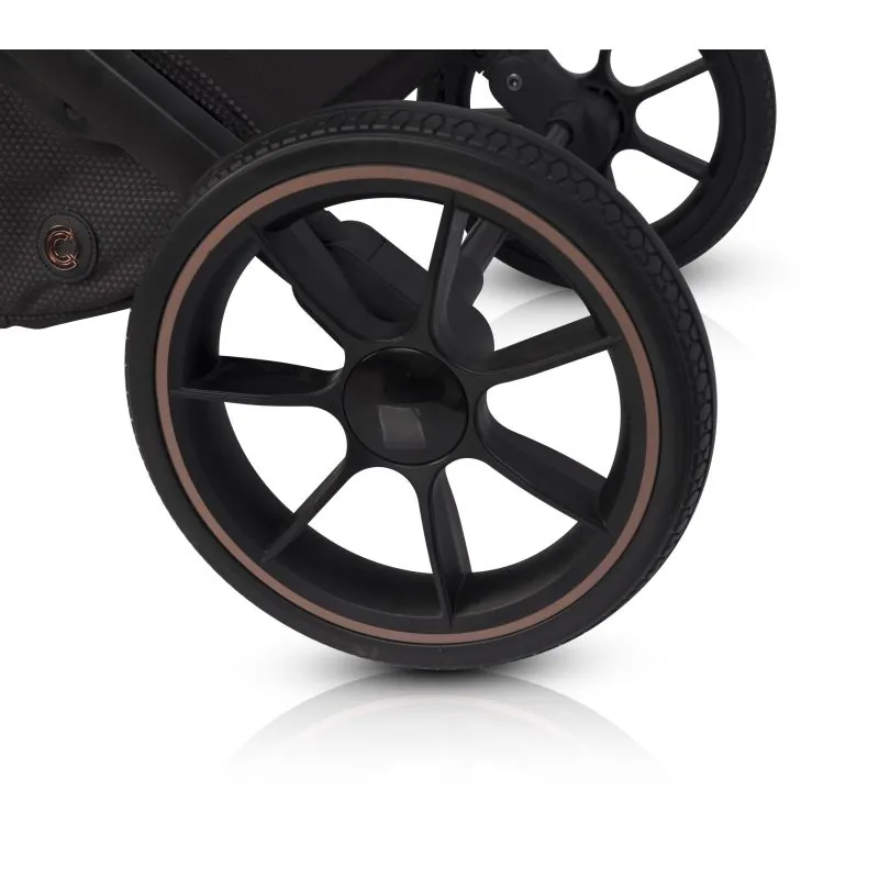Mūsdienīgs daudzfunkcionāls ratiņš bērniem līdz 22 kg,Atbilstības EN 1888-1: 2018 un EN 1888-2: 2018 sertifikāts,Noņemama sporta daļa (var uzstādīt uz priekšu un atpakaļ),Ratiņu salocīšanas iespēja, kad sēdeklis ir uzstādīts uz priekšu vai atpakaļ,Teleskopiska roktura augstuma regulēšana (vadot),Teleskopiska jumtiņa regulēšana uz augšu, tādējādi palielinot vietu,Kāju balsta regulēšana,Iespēja vilkt salocītu ratiņu kā čemodānu,Lieli riteņi ar gultņiem un gumijas riepām (lieliska saķere arī uz sniega),5 punktu drošības jostas, Samazināšanas ieliktņu sistēma uz sēdekļa,Neslīdošs audums uz sēdekļa virsmas,Buomelis un rokturis pārklāti ar ekoloģisku ādu,Lietus aizsardzība, kas pārklāj visu ratiņu apdari,Pašizlīdzinoši priekšējie riteņi ar iespēju bloķēt braucot taisni,Salocīšanas sistēma ar vienu roku,Iepirkumu grozs zem ratiņa (viegla piekļuve grozam, pateicoties atloka aizmugurē).