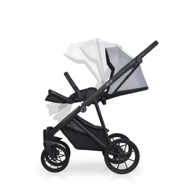 Salokās ar rāmi, vērsta uz abām pusēm;Piestiprināma ar skatu pret jums un pret pasauli;Paredzēta bērniem līdz 22 kilogramiem;Visi audumi ir ar UV50+ saules aizsardzības filtru;Magnētiskās 5 punktu drošības jostas, ērtai atvēršanai un aizvēršanai;Garš un plašs sēdeklis;Iekšpusē papildus polsterējums;Noņemams buferis, pārklāts ar eko ādu;Pagarināms jumtiņš pret vēju vai sauli;Regulējams kāju balsta augstums;Aizmugurē kabatiņa sīkumiem;Kāju pārsegs ar ērtāku bērna izcelšanas funkciju;Kopējais guļus stāvokļa garums: 96 cm.;Sporta daļas svars ar rāmi: 13,6 cm.;