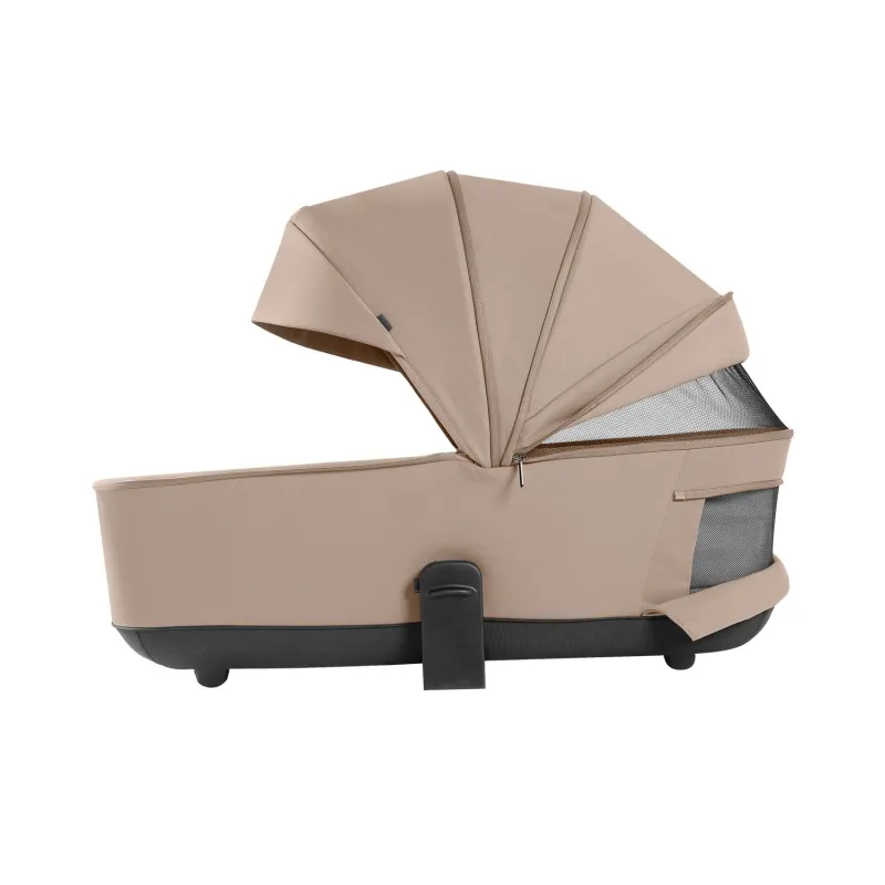 Panorāmas logs šūpuļa aizmugurē, veicinās bērnu velties uz vēdera un vērot mainīgās ainavas braucot, kā arī veicinās vingrošanu;