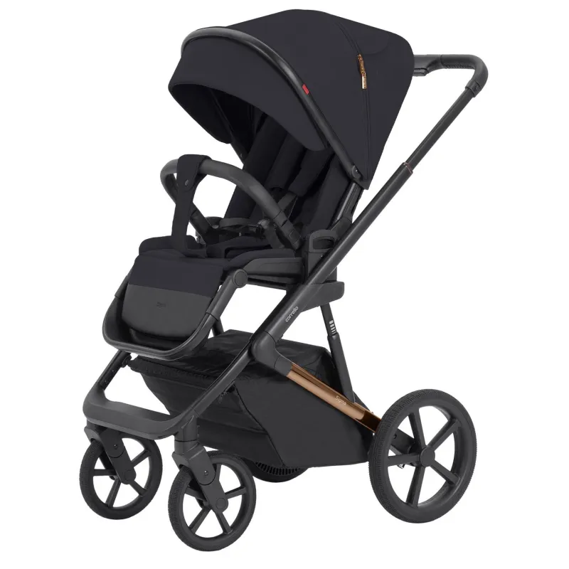 Piestiprinās ar seju pret jums un pret pasauli:Salokās arī pagriezta uz abām pusēm un aizņem ļoti maz vietas;Rāmja svars ar sporta daļu 12 kg;Paredzēts bērniem līdz 22 kilogramiem;Pagarināms sēdeklis, vēl ilgākai lietošanai;Visi audumi ir ar UV50+ aizsardzību pret saules filtru;Pagarināms jumtiņš pret sauli vai vēju;Jumtiņa augšpusē iebūvēts lodziņš bērna novērošanai;Aizsardzība pret nejaušu salocīšanu vai izlocīšanu;Kāju balsta regulēšana;5 punktu drošības jostas;Pat 92 cm garš guļamais stāvoklis;Neslīdošs audums uz sēdekļa virsmas;Eko ādas pārklājums buferim:Starpkāju josta;Silts kāju pārsegs;