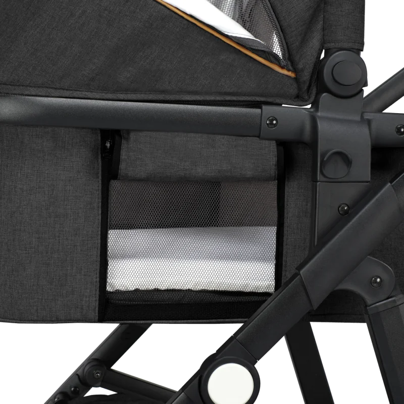Plašs šūpulis ar ērtu matraci.Mīksts matracis ar atbilstoša biezuma kokvilnas pārvalku. Šūpuli var viegli un ātri salocīt līdz kompaktam izmēram.Ērta tīrīšana – iekšējo materiālu pietiek noslaucīt ar mitru drānu, bet matrača pārvalku var noņemt un izmazgāt.Šūpulim ir ērta kabata viedtālrunim.Pagarināts jumtiņš ar logu - nodrošina bērnam komfortu un aizsargā no lietus, vēja un saules. Aizmugurējā šūpuļa daļā esošais logs nodrošina atbilstošu ventilāciju.Vienmērīga ventilācija – gondolas sānos ir speciālas ventilācijas plāksnes, kas nodrošina pietiekamu gaisa cirkulāciju.Ergonomisks rokturis ļauj viegli nest bērnu šūpulī.