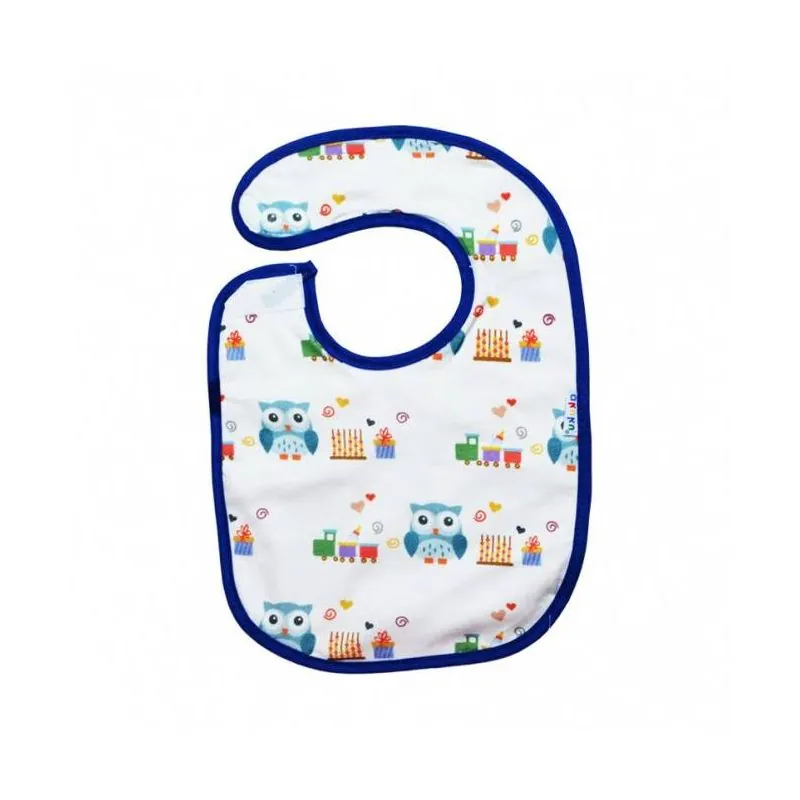 Izgatavots no 100% frotē kokvilnas. Priekšautiņa odere ir mīksts, ūdensnecaurlaidīgs audums. Aizsargā apģērbu no netīrumiem. Krāsaini raksti piesaista mazuļa uzmanību ēšanas laikā. Velcro aizdare palīdz vieglāk aiztaisīt un noņemt bērnam.Platums 22,5 cm, garums no kakla 19,5 cm