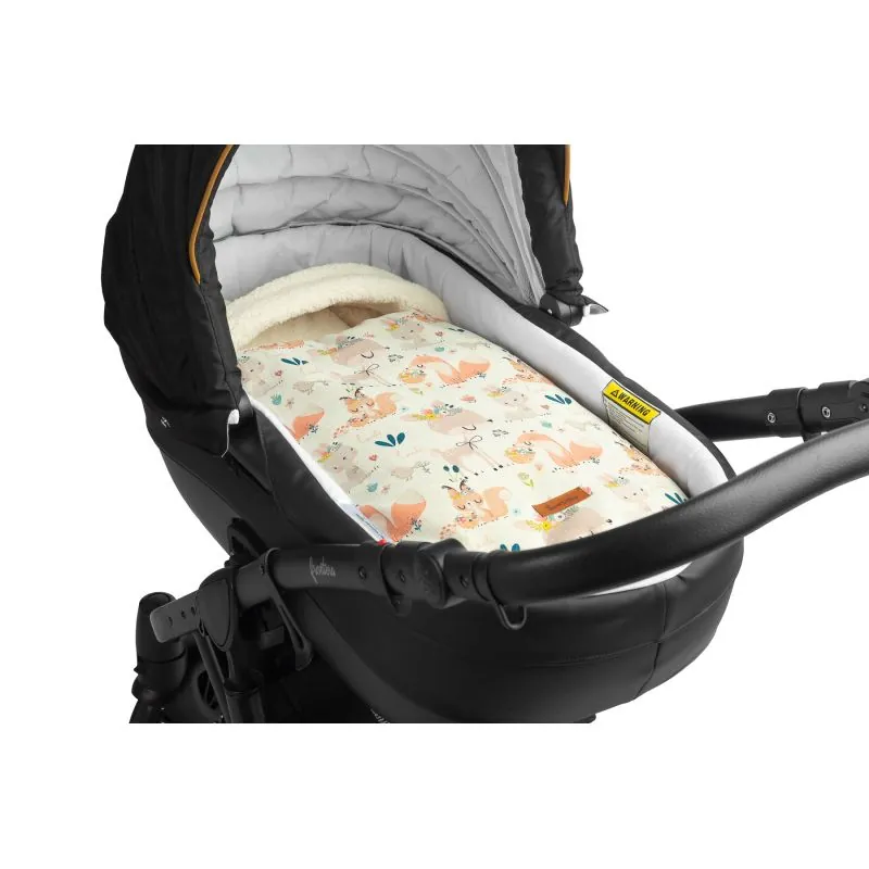 Konverts paredzēts ratiņiem vai automašīnas sēdeklītim. Tam ir vietas, lai ievērtu siksnas, tāpēc tas ir ļoti ērts lietošanai.