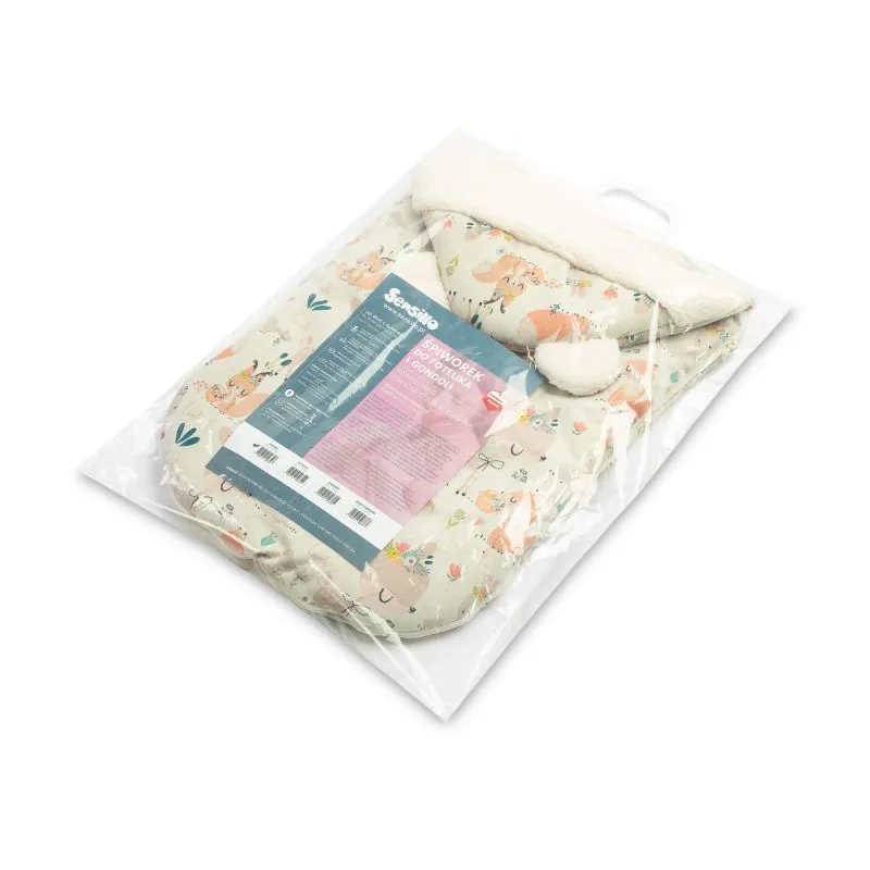 Konverts paredzēts ratiņiem vai automašīnas sēdeklītim. Tam ir vietas, lai ievērtu siksnas, tāpēc tas ir ļoti ērts lietošanai.