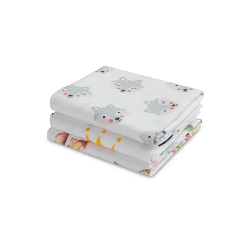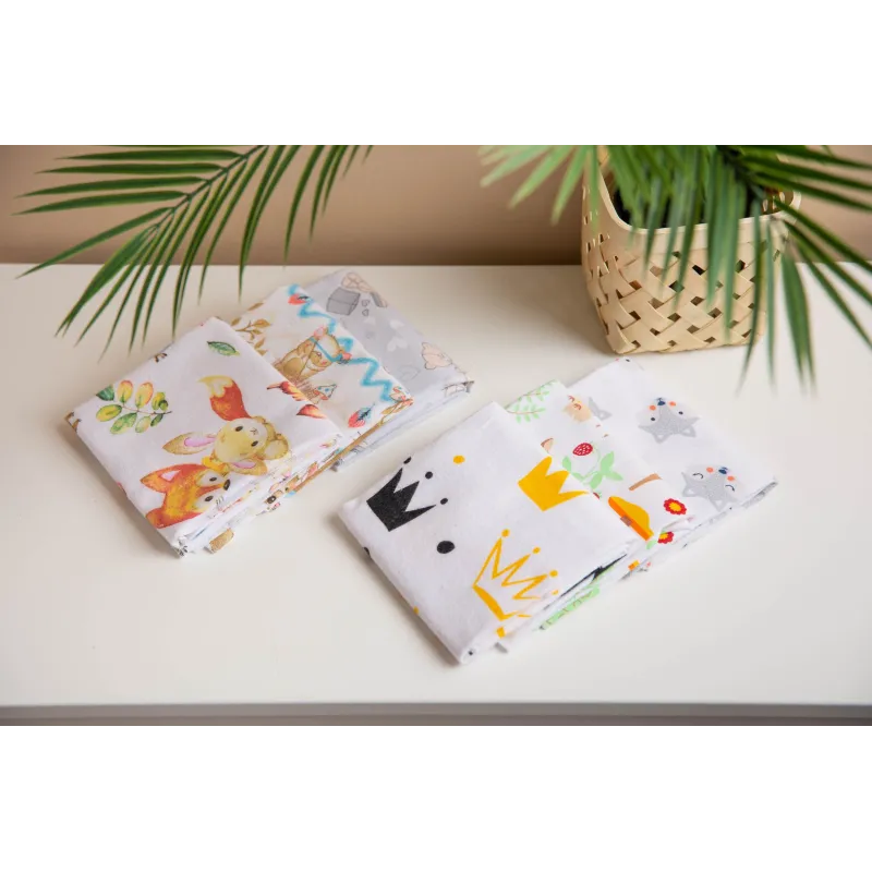 Izgatavotas no augstas kvalitātes flaneļa;Otrais slānis ir ūdensnecaurlaidīgs elpojošs materiāls;Iepakots pa 3 vienībām komplektos;Komplektu dizains tiek izvēlēts nejauši;Tomēr komplekti vienmēr tiek sadalīti zēnu un meiteņu komplektos;Piezīme: Negludiniet no ūdensnecaurlaidīgās puses!Izmērs: 50 x 60 cm.;Sastāvs: 100 % kokvilna.