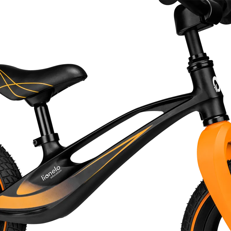 Magnija sakausējuma rāmis;Īpaši viegls - 3,8 kg;Velosipēda rokturi izgatavoti no neslīdoša materiāla;Stūrei ir īpaša drošības funkcija, kas ierobežo stūrēšanas leņķi un neļauj bērnam apgāzties braucot;Piepūšami riteņi;Regulējama stūre un sēdeklis;Velosipēda pārnēsāšanas rokturis;Ērts kāju balsts;Izmēri: 39 x 88 x 50 57 cm;Stūres regulēšana: 50 līdz 57 cm;Sēdekļa regulēšana: 35 līdz 43 cm;Ieteicamais vecums no 2 gadiem;Ieteicamais svars līdz 30 kg.