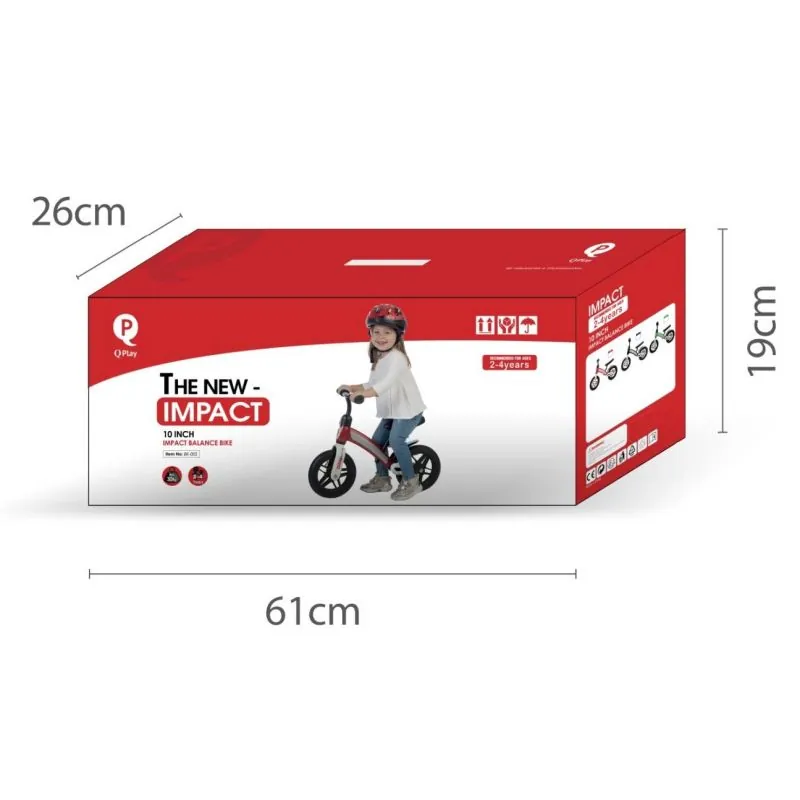 „QPlay Impact“ līdzsvara velosipēds piedāvā unikālu rāmja struktūru, kas pārklāta ar krāsainu plastmasas korpusu.