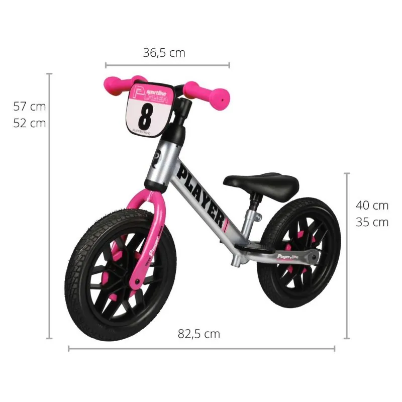 Balansa velosipēds PLAYER ir unikāls rāmis un regulējams, polsterēts sēdeklis, kas pielāgojas jūsu bērnam.