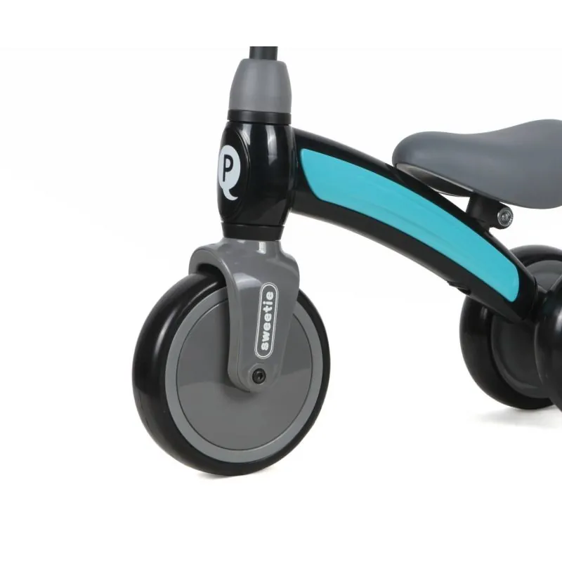 Tērauda konstrukcija ar plastmasas korpusu,Vienkāršota forma,2 līmeņu regulējams stūres augstums,Mīksts sēdeklis,2 līmeņu regulējams sēdekļa augstums,Neslīdoši rokturi ar pārvalkiem,Stūrēšanas leņķa ierobežotājs,Stieņa un sēdekļa aizsardzība,3 EVA riteņi stabilitātei,Klusas riepas no EVA putām,Maksimālais svars: 20 kg,Vecums 1-3 gadi.