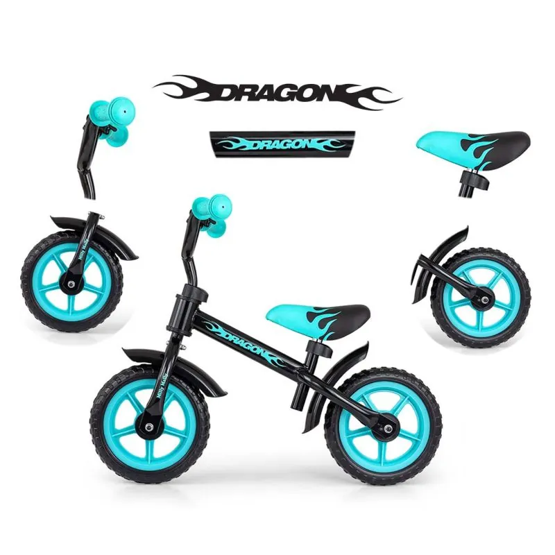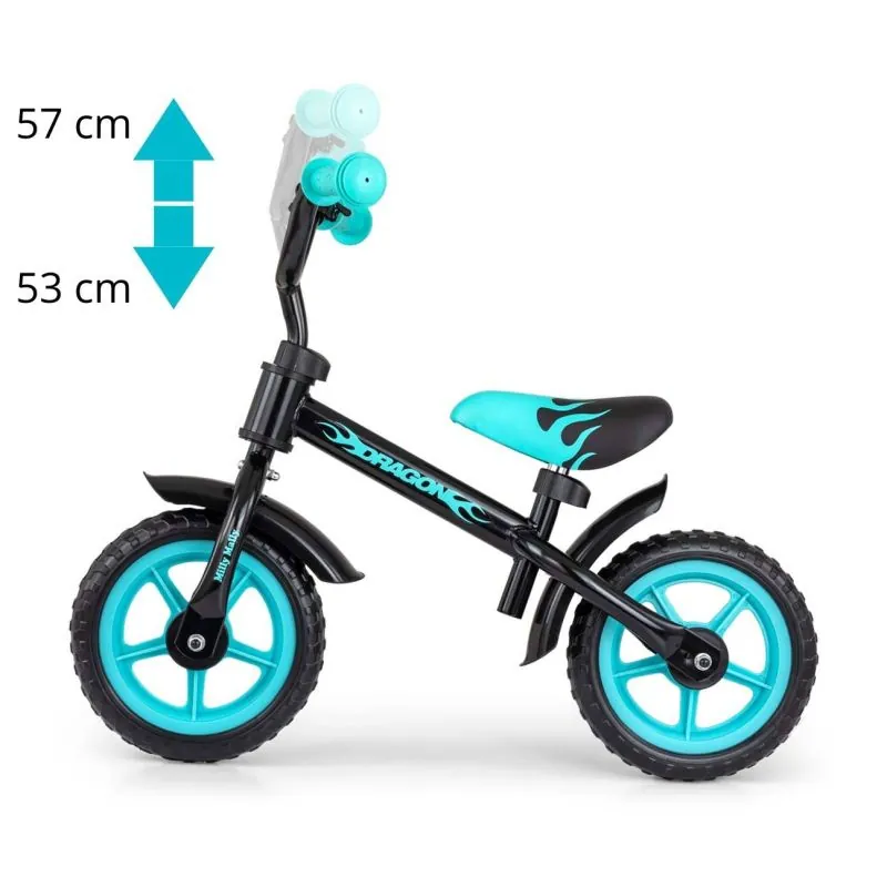 Balansinis dviratis DRAGON su stabdžiu yra idealus sprendimas vaikams, kurie tik pradeda mokytis važiuoti balansiniu dviračiu.DRAGON užtikrina stabilumą, saugumą ir vairavimo komfortą tiek namuose, tiek lauke, pvz., sode. Lengva ir patvari konstrukcija veiks bet kokiomis sąlygomis.Dviratis turi galinį užspaudžiamą rankinį stabdį, kurio dėka žymiai padidėja saugumo lygis, vaikas gali sustabdyti dviratį jam patogiu metu.Putplasčio ratai užtikrina riedėjimo komfortą.Minkštos neslystančios rankenos su užvalkalais apsaugos vaiko rankas, o reguliuojamas balnelio ir vairo aukštis leis reguliuoti dviratį pagal vaiko ūgį.Jis taip pat turi posūkio ribotuvą – apsaugą nuo vairo pasukimo taip, kad būtų trukdoma važiuoti.Dviratis DRAGON lavina motoriką, jėgą ir kojų raumenis, išlaiko pusiausvyrą, rūpinasi motorine koordinacija.Sėdynės aukščio reguliavimas.Vairo aukščio reguliavimas.Tvirtas lengvas plieninis rėmas.Rankinis stabdis.Skylė kojų atramos tvirtinimui.Neslystančios guminės rankenos.Kontūruota minkšta sėdynė.10" putplasčio ratai.Skambutis.Vairo ribotuvas.Galinio rato guolis.Amžiaus diapazonas 2 - 4+.