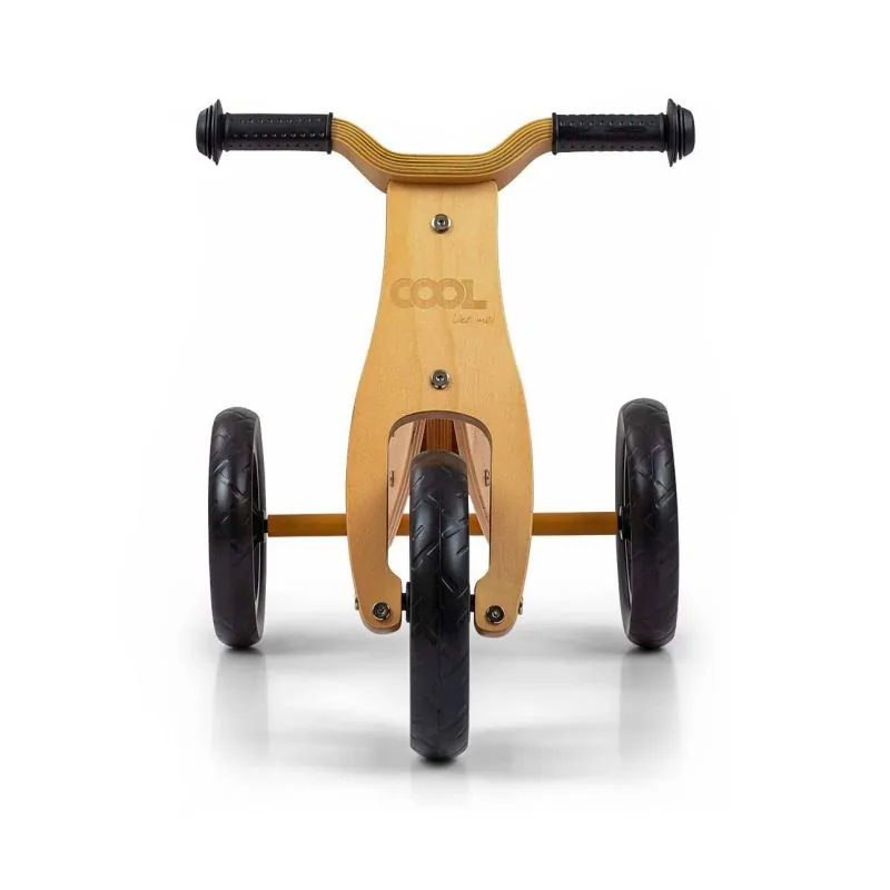 Koka rāmis.Neslīdoši rokturi ar korpusiem.7" putupolistirola riteņi.4 pakāpju sēdekļa augstuma regulēšana.Divfunkcionalitāte (trīsritenis vai dubultais ritenis).Maksimālā slodze 25 kg.Paredzēts bērniem 18-36 mēnešu vecumā.Atbilst Eiropas drošības standartiem.