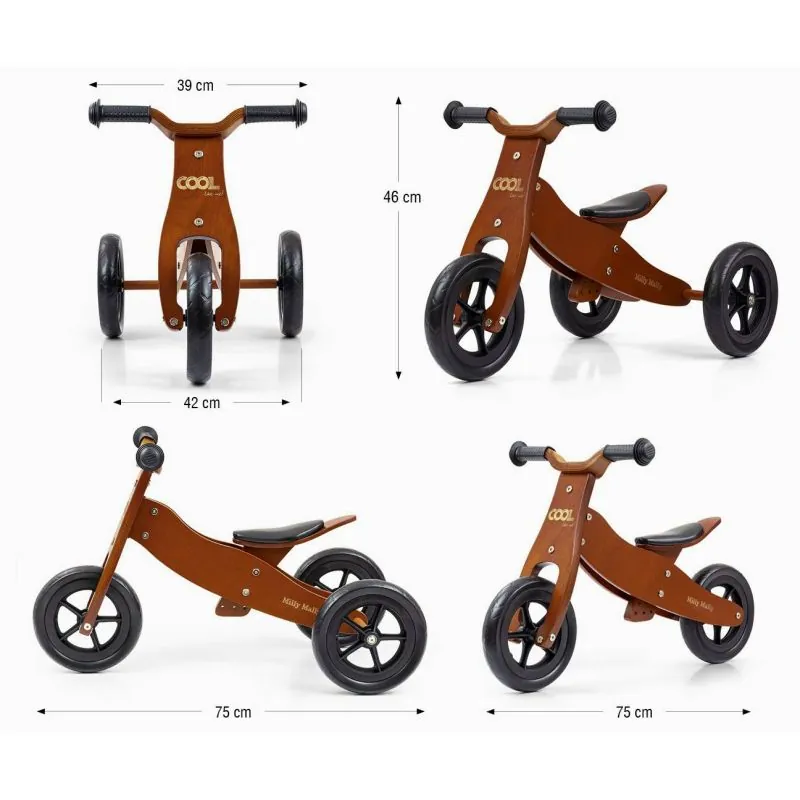 Milly Mally līdzsvara velosipēds/trīsritenis 2in1 Cool, Tumši Dabisks