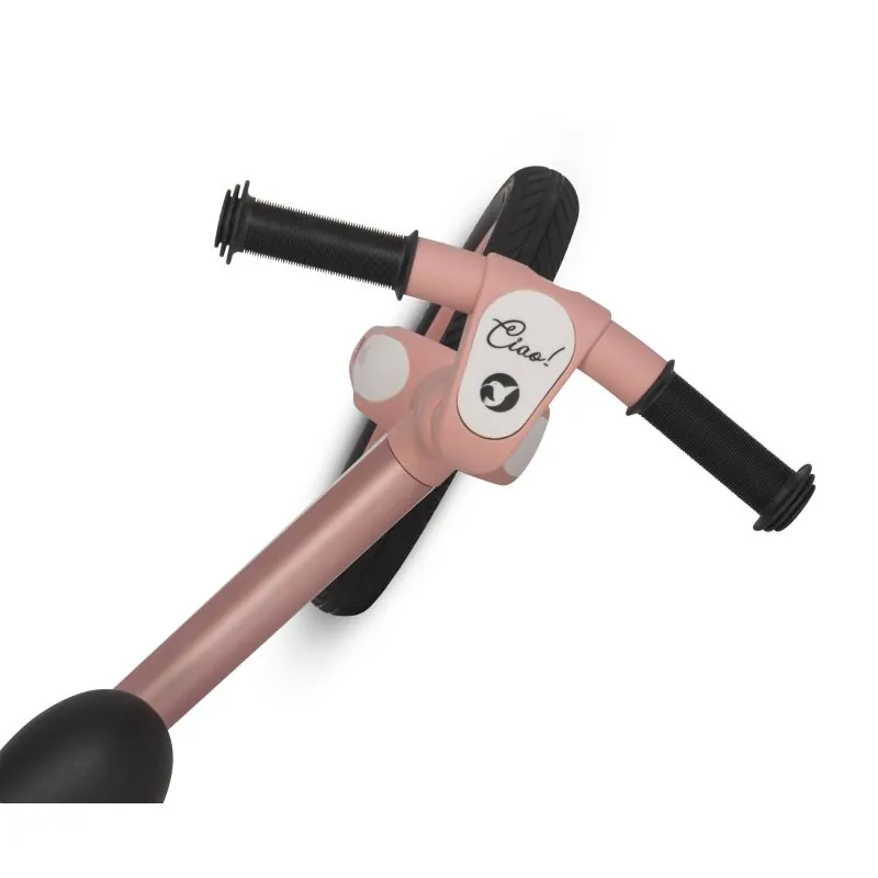 Reti līdzsvara velosipēdiem ir saliekamā funkcija, tāpēc Ciao velosipēds ir patiešām izcils;Inovatīvā ONE CLICK saliekamā funkcija noteikti noderēs, nesot velosipēdu. Salocītu velosipēdu var, piemēram, glabāt mugursomā;Līdzsvara velosipēds ir labākais risinājums, lai iemācītos braukt ar tradicionālo velosipēdu;Tā dēļ jūsu bērns ātri un droši iemācīsies saglabāt līdzsvaru, un no tā ir tikai solis, lai pārietu uz tradicionālo velosipēdu;Spēja atspiesties ar kājām sniedz bērnam drošības sajūtu, tāpēc viņš pietiekami drosmīgi attīsta ātrumu, kas ļauj droši saglabāt līdzsvaru;Līdzsvara velosipēdi bieži kļūst par neatņemamiem pavadoņiem ikdienas pastaigu laikā;CIAO līdzsvara velosipēds ir augstākās kvalitātes izstrādājums;Tā izturīgā un stabilā konstrukcija ir izgatavota, izmantojot metāla un plastmasas kombinācijas tehnoloģiju, kas nodrošina rāmim ļoti lielu stingrību un vieglumu;Pateicoties regulējamam sēdekļa un stūres augstumam, CIAO velosipēds ir paredzēts bērniem no 2 līdz 5 gadiem un sver līdz 25 kg.;Tam ir Eiropas drošības standarts EN 71-1-2-3.;Braukšanas komfortu nodrošina priekšējie amortizatori, mīksti gumijas riteņi un mīksts sēdeklis, kas pildīts ar īpaši elastīgām putām;Riepām ir protektors, kas nodrošina labu saķeri;CIAO līdzsvara velosipēds ir iepakots estētiskā, krāsainā kastē ar rokturi, tāpēc tas lieliski derēs kā dāvana jebkurā gadījumā;