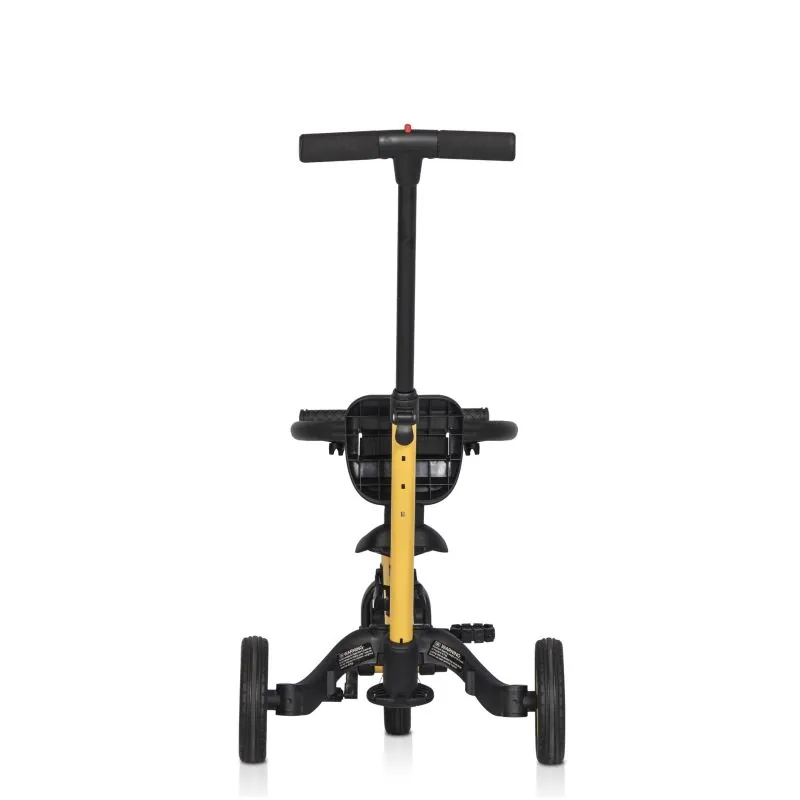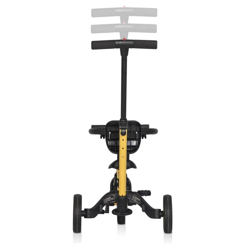 Pateicoties ļoti vienkāršai, patentētai velosipēda funkciju maiņas sistēmai, TREMIX UP var izmantot 6 dažādos veidos, atkarībā no bērna vecuma un prasmēm;Tas paredzēts bērniem no 1 līdz 5 gadiem;Pateicoties šim inovatīvajam risinājumam, velosipēds aug kopā ar bērnu, tāpēc viņam ir vieglāk iemācīties braukt ar velosipēdu.Augstas kvalitātes gumijas riepu dēļ velosipēds lieliski pieķeras virsmai gan kā trīsritenis, gan velosipēds.Apvienojot vairākus transportlīdzekļus vienā:1. Ratiņi – bērniem no 1 līdz 2 gadiem. Šajā konfigurācijā trīsritenis aizstāj ratiņus. Sēdeklim ir atzveltne ar drošības jostām un gredzens, kas aizsargā bērnu. Trīsriteņa aizmugurē ir stumšanas rokturis ar 3 pakāpju augstuma regulēšanu, pateicoties kuram vecāki var ērti stumt un manevrēt trīsriteni. Šajā laikā bērna kājas ērti balstās uz pedāļiem, kas uzstādīti zem velosipēda rāmja, veidojot kāju balstu.2. Brauciens ar trim riteņiem – bērniem no 1 līdz 2 gadiem. Šajā konfigurācijā ir noņemti pedāļi, atzveltne, aizsarggredzens un stumšanas rokturis, un aizmugurējie riteņi ir attālināti viens no otra. Bērns ērti sēž uz zema sēdekļa un lēnām stumjas ar kājiņām.3. Trīsritenis – bērniem no 2 līdz 3 gadiem. Šajā konfigurācijā trīsritenim ir uzstādīti pedāļi, un aizmugurējie riteņi ir izvietoti viens no otra. Atzveltne, aizsarggredzens un stumšanas rokturis ir noņemti. Sēdekli regulējam atbilstoši bērna augumam, lai viņš viegli sasniegtu pedāļus ar nedaudz saliektām kājām. Trīsritenis ir drošs un māca, kā vienmērīgi mīt pedāļus.4. Balansa velosipēds – 3-4 gadus veciem bērniem. Pateicoties jaunajai patentētajai sistēmai, nospiežot tikai 3 pogas un neizjaucot nevienu elementu, trīsriteni var pārvērst par praktisku mācību balansa velosipēdu. Vienkārši apvienojiet aizmugurējos riteņus vienā stabilā dubultā ritenī un noņemiet pedāļus. Pedāļus var noņemt, nospiežot tikai vienu pogu, un nav nepieciešami nekādi instrumenti. Balansa velosipēds tiek uzskatīts par labāko veidu, kā iemācīties braukt ar velosipēdu. Jūsu bērns ātri iemācīsies saglabāt līdzsvaru, un pāreja uz parastu velosipēdu būs tikai formalitāte. Šajā konfigurācijā pedāļi, atzveltne un stumšanas rokturis tiek noņemti.5. Velosipēds ar stumšanas rokturi - bērniem no 4 līdz 5 gadiem. Kad bērns mācās pats braukt ar velosipēdu, ir svarīgi, lai vecākiem būtu iespēja viņu aizsargāt. Velosipēda aizmugurē uzstādītā stumšanas roktura dēļ vecāki var turēt velosipēdu vertikālā stāvoklī, kad bērns zaudē līdzsvaru. Šajā konfigurācijā pedāļi tiek uzstādīti uz priekšējā riteņa, aizmugurējie riteņi ir apvienoti, un sēdeklis un stūre ir pielāgoti bērna augumam. Tas ir pēdējais mācīšanās braukt posms.6. Velosipēds - bērniem no 4 līdz 5 gadiem. Apguvis līdzsvaru uz balansa velosipēda un velosipēda ar stumšanas rokturi, viņš var patstāvīgi braukt vecāku uzraudzībā. Šajā konfigurācijā pedāļi tiek piestiprināti pie priekšējā riteņa, un sēdeklis un stūre regulējas atbilstoši bērna augumam, tādējādi radot pedāļiem darbināmu velosipēdu. Pateicoties šai funkcijai, TREMIX UP var būt jūsu bērna iecienītākā rotaļlieta ilgu laiku.Vienkārša montāža un demontāža;Rupji, neslīdoši pedāļi;Ērta un neslīdoša stūre;Divās pozīcijās regulējama stūre;Regulējams sēdekļa augstums;Gumijas, klusi ritoši riteņi;Pedāļi noņemami ar vienas pogas nospiešanu;Noņemtie pedāļi piestiprinās zem sēdekļa, uz rāmja;Ērta transportēšana:Eiropas standarts: EN71