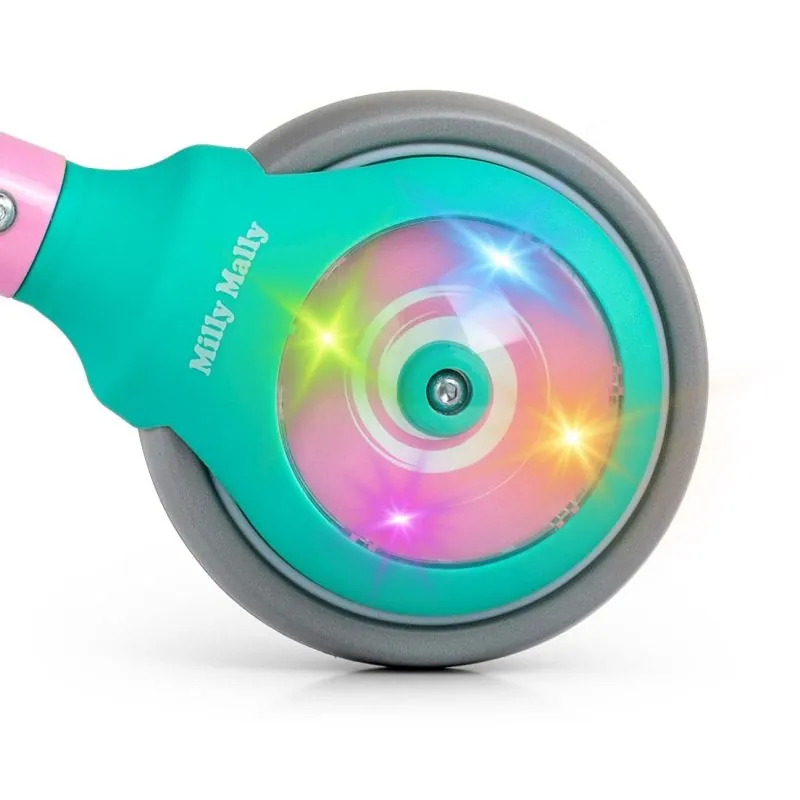 Spīdoši aizmugurējie riteņi;Vienkāršs tērauda rāmis;Mīksti neslīdoši rokturi;Konturēts mīksts sēdeklis;Stūrēšanas leņķa ierobežotājs;Dubultie riteņi priekšā nodrošina stabilitāti;EVA materiāla riteņi, tāpēc brauciens būs kluss;Māca saglabāt līdzsvaru un stabilitāti;Lielisks līdzeklis, kas māca pieņemt lēmumus un reaģēt uz ārējiem apstākļiem;Attīsta spēju koncentrēties un palīdz iegūt pašapziņu;Ļoti viegls - svars 2 kg.;Vecums 18-36 mēneši;Maks. slodze - 25 kg.