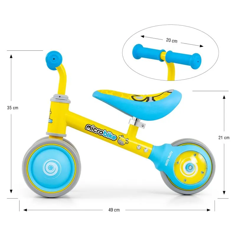 Milly Mally līdzsvara trīsritenis Micro Plus - lielisks pārvietošanās līdzeklis pašiem mazākajiem. Piemērots bērniem no 18 mēnešiem.
