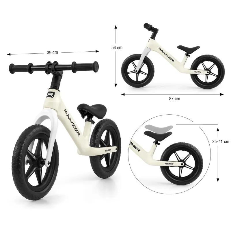 Ergonomiska velosipēda forma – nodrošina nepārspējamu komfortu braucot un pareizu stāju.Rāmis – ļoti viegla konstrukcija.12 collu riteņi, izgatavoti pēc jaunākās EVA tehnoloģijas, labi absorbē triecienus, kas palielina braukšanas komfortu.Sēdeklis - ērts mīksts profilēts sēdeklis.Riteņi – unikāls trīs spieķu raksts, kas izceļ velosipēdu.Sēdekļa augstuma regulēšana (35-41 cm)Stūre ar gultņiemViegls rāmisNeslīdoši rokturiĒrts mīksts profilēts sēdeklisRiteņi ar gultņiemVecuma diapazons 2+Atbilst Eiropas drošības standartiem