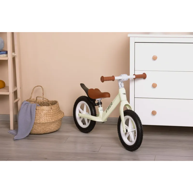 Šis burvīgais līdzsvara velosipēds ir lieliska izvēle bērniem, kuri tikai sāk savus velosipēdu piedzīvojumus. Tas tika izstrādāts, ņemot vērā bērna ērtības un drošību, un tā estētika priecē ar pasteļkrāsām, piešķirot tam unikālu šarmu. Brūno toņu detaļas piešķir eleganci un klasisku stilu.