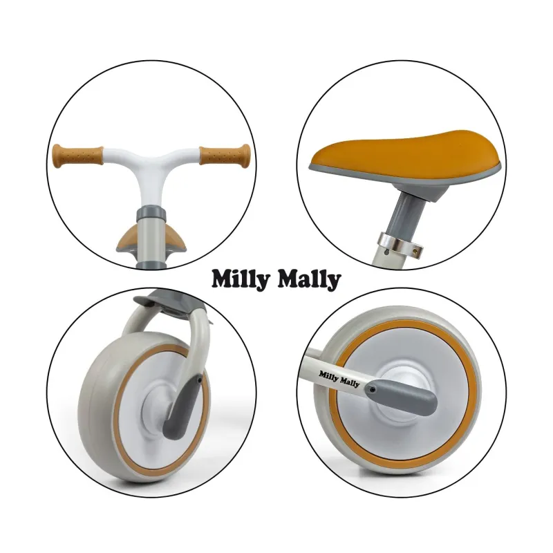 Milly Mally Skippy līdzsvara velosipēda ergonomiskā forma nodrošina nepārspējamu komfortu braukšanas laikā un pareizu bērna stāju. Piemērots bērniem no 18 mēnešiem.