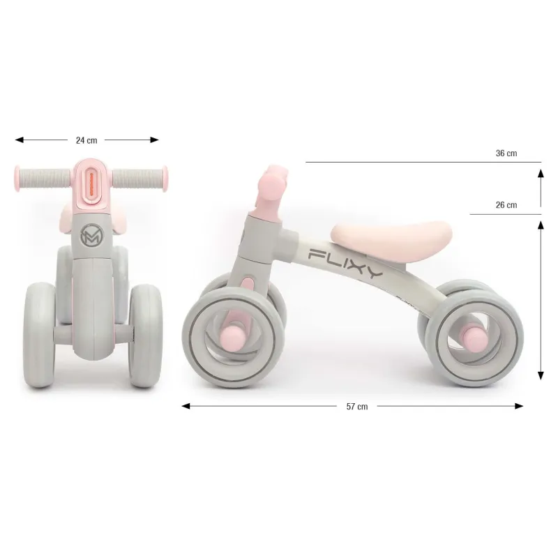 „FLIXY“ ir novatorisks transportlīdzeklis pašiem mazākajiem, kurā mūsdienīgs dizains apvienojas ar funkcionalitāti, drošību un komfortu. Piemērots bērniem no 12 mēnešu vecuma.