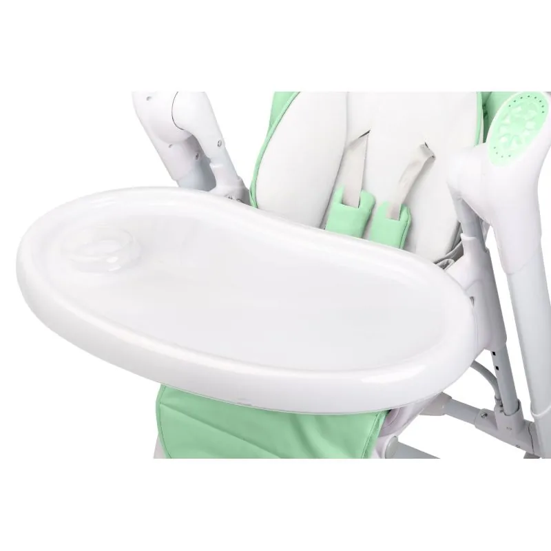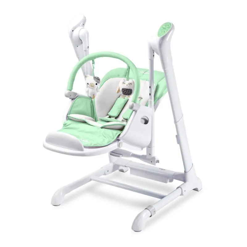 Izmērs: 60x90x103 cm;Sēdekļa izmērs: 33x22 cm;Atzveltnes izmērs: 33x47 cm;Izmērs salocītā veidā: 58x60x110 cm;5 punktu drošības jostas;Regulējams atzveltnes un kāju balstu augstums, kā arī krēsla augstums;Izgatavots no mīksta PVC materiāla;Polsterējumi, melodijas;Nepieciešamas baterijas 4x1,5 V L14 (nav iekļautas) vai lietošanai ar lādētāju (iekļauts);Svars: 14,1 kg;Regulējams šūpošanās ātrums un iespēja šūpot noteiktu laiku;Alumīnija rāmis;Noņemams paplāte.