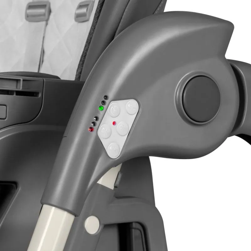 Divi vienā izstrādājumā: barošanas krēsls (no 6 mēn. līdz 15 kg) + šūpoles (līdz 9 kg).Plaša, ērta sēdvieta.Ergonomisks atzveltne.Sānu polsterējuma daļas pildījums atbalsta pareizu stāju.3 šūpošanās ātrumi.Automātiska bērna kustību noteikšana.Mīksts sēdekļa polsterējums.5 punktu, regulējama garuma drošības jostas.2 pakāpju jostu augstuma regulēšana.5 pakāpju sēdekļa augstuma regulēšana.Bērna galvas spilvens integrēts polsterējumā.3 pakāpju atzveltnes regulēšana.2 soļu paplātes regulēšana.Intuitīva vadības pults.8 nomierinošas šūpuļdziesmas.4 riteņi.Viegla ieliktņa un polsterējuma tīrīšana.Paplāti var mazgāt trauku mazgājamā mašīnā.Integrēts taimeris.
