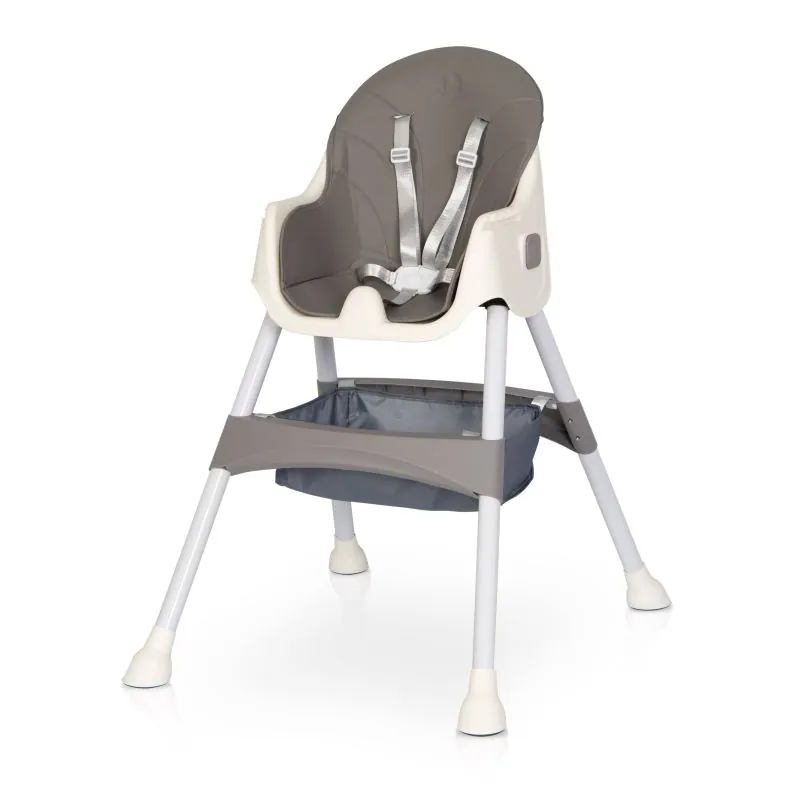 PICOLO saukta par augsto krēslu 4 vienā, jo to var izmantot 4 dažādos veidos:Augsts brīvi stāvošs augstais krēsls – Šīs konfigurācijas augstajam krēslam ir garas kājas un piestiprināts paplāte. Augstais krēsls nodrošina lielāku komfortu vecākiem, kas baro bērnu. Pateicoties regulējamai paplātei, krēslu nav nepieciešams novietot blakus galdam, tāpēc jūs varēsiet ērti pabarot jebkurā situācijā.Barošanas krēsls pievilkts pie galda – šajā konfigurācijā jūs varat izņemt paplāti un pievienot krēslu pie galda virsmas. Tādā veidā bērns var ēst savus ēdienus kopā ar vecākiem pie viena galda.Zems brīvi stāvošs krēsls – šīs konfigurācijas krēslam ir īsas kājas un piestiprināts paplāte. Kāju balsts var būt piestiprināts vai noņemams atkarībā no bērna auguma. Šīs formas krēsls ļauj ērti pabarot nedaudz lielāku bērnu, kurš jau staigā pats. Zems krēsls – šīs konfigurācijas krēslam ir īsas kājas. Noņemams kāju balsts, paplāte un drošības jostas. Tas ir paredzēts vecākiem bērniem un ne vienmēr barošanai. Tas var darboties kā neatkarīgs bērnu mēbele.Viegli tīrāms - PICOLO barošanas krēsls ir ar estētisku, viegli tīrāmu apdari no ekoloģiskas ādas. Netīrumus un ēdiena atlikumus viegli noņemsiet ar mitru drānu. Ārējo paplāti var ātri un viegli noņemt tīrīšanai.Jūsu bērna drošību nodrošina 5 punktu drošības jostas un īpaša starp kāju aizsardzība, kas neļauj noslīdēt no krēsla. Plašs attālums starp kājām un lielie neslīdošie gumijas aizbāžņi nodrošina krēsla stabilitāti.Krēsla apvalks ir profilēts tā, lai bērna pozīcija būtu ērta un stabila. Drošības jostas ir regulējama augstuma. Jostas ir izgatavotas no blīvi austa, gluda auduma, kas netrīsīs maigo mazuļa ādu. Pateicoties putu pamatnei, apdare ir mīksta. Plašs, ērts kāju balsts nodrošina stabilu bērna kāju atbalstu.PICOLO krēslu izmantojiet 4 dažādos veidos, atkarībā no situācijas un bērna auguma. Pateicoties zem sēdekļa piekārtajam grozam sīkumiem, vienmēr varat turēt pie rokas nepieciešamos piederumus.Pateicoties viegli lietojamai saliekamajai sistēmai, krēsls PICOLO neaizņems daudz vietas, kad to nelietosiet. Vienkārši nospiediet sēdekļa sānos esošās pogas, lai salocītu kājas gan augsto, gan zemo krēslu konfigurācijās.Dubultā paplāte – izmantojot divas paplātes, jūsu krēsls ir vēl praktiskāks. Iespēja ātri izņemt ārējo paplāti paātrina tīrīšanu pēc ēdienreizes, bet galvenā paplāte joprojām aizsargā jūsu bērnu.Paredzēts: bērniem no 6 mēnešiem līdz 15 kg svara.