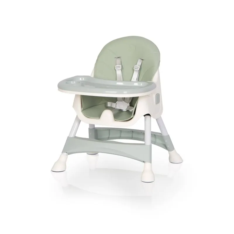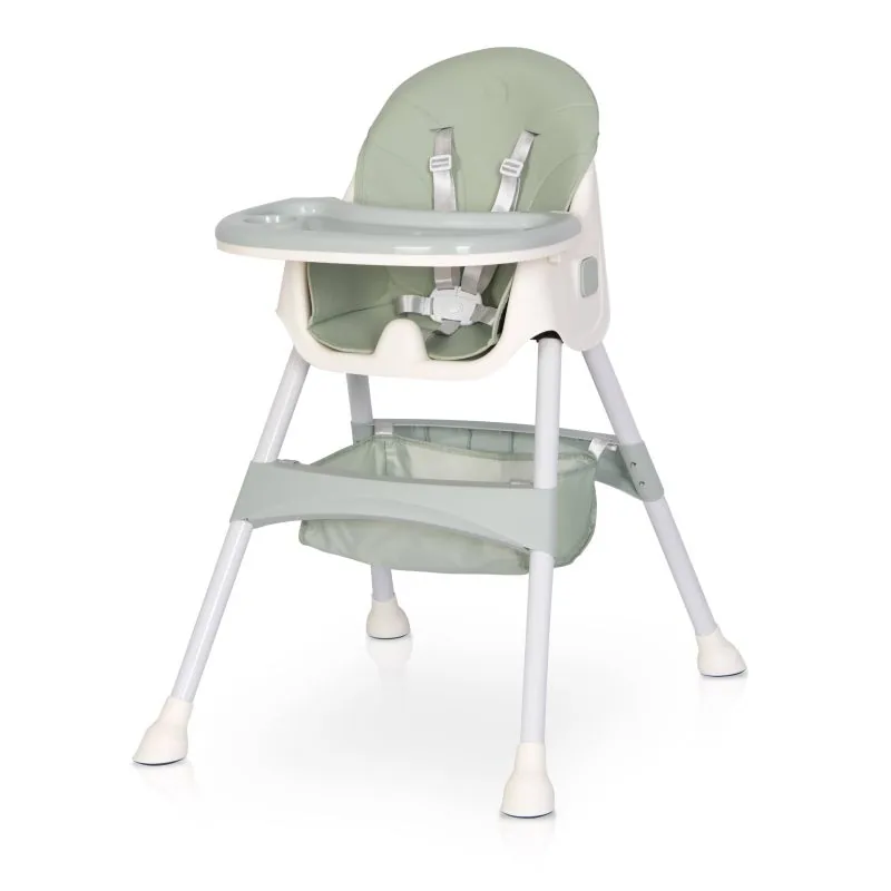 PICOLO saukta par augsto krēslu 4 vienā, jo to var izmantot 4 dažādos veidos:Augsts brīvi stāvošs augstais krēsls – Šajā konfigurācijā augstajam krēslam ir garas kājas un piestiprināts paplāte. Augstais krēsls nodrošina lielāku komfortu vecākiem, kas baro bērnu. Pateicoties regulējamai paplātei, krēslu nav nepieciešams novietot pie galda, tāpēc jūs varat ērti pabarot jebkurā situācijā.Barošanas krēsls pievilkts pie galda – šajā konfigurācijā varat izņemt paplāti un pievienot krēslu pie galda virsmas. Tādā veidā bērns var ēst savus ēdienus kopā ar vecākiem pie viena galda.Zems brīvi stāvošs krēsls – šajā konfigurācijā krēslam ir īsas kājas un piestiprināta paplāte. Kāju balsts var būt piestiprināts vai noņemts atkarībā no bērna auguma. Šīs formas krēsls ļauj ērti pabarot nedaudz lielāku bērnu, kurš jau pats staigā. Zems krēsls – šajā konfigurācijā krēslam ir īsas kājas. Noņemams kāju balsts, paplāte un drošības jostas. Tas ir paredzēts vecākiem bērniem un ne vienmēr barošanai. Tas var darboties kā neatkarīgs bērnu mēbele.Viegli tīrāms - PICOLO barošanas krēsls ir ar estētisku, viegli tīrāmu apdari no ekoloģiskas ādas. Netīrumus un ēdiena atliekas viegli noņemsiet ar mitru drānu. Ārējo paplāti var ātri un viegli noņemt tīrīšanai.Jūsu bērna drošību nodrošina 5 punktu drošības jostas un īpaša starp kājām aizsardzība, kas neļauj noslīdēt no krēsla. Plašs attālums starp kājām un lielie neslīdošie gumijas aizbāžņi nodrošina krēsla stabilitāti.Krēsla apvalks ir profilēts tā, lai bērna pozīcija būtu ērta un stabila. Drošības jostas ir regulējama augstuma. Jostas ir izgatavotas no blīvi austām, gludām lentēm, kas netrīsīs maigo mazuļa ādu. Pateicoties putu pamatnei, apdare ir mīksta. Plašs, ērts kāju balsts nodrošina stabilu bērna kāju atbalstu.PICOLO krēslu izmantojiet 4 dažādos veidos, atkarībā no situācijas un bērna auguma. Pateicoties zem sēdekļa piekārtajam grozam sīkumiem, vienmēr varat turēt nepieciešamos piederumus pa rokai.Pateicoties viegli lietojamai salokāmajai sistēmai, krēsls PICOLO neaizņems daudz vietas, kad to neizmantosiet. Vienkārši nospiediet sēdekļa sānos esošās pogas, lai salocītu kājas gan augsto, gan zemo krēslu konfigurācijās.Dubultā paplāte – izmantojot divas paplātes, jūsu krēsls ir vēl praktiskāks. Iespēja ātri izņemt ārējo paplāti paātrina tīrīšanu pēc ēdienreizes, bet galvenā paplāte joprojām aizsargā jūsu bērnu.Paredzēts: bērniem no 6 mēnešiem līdz 15 kg svara.