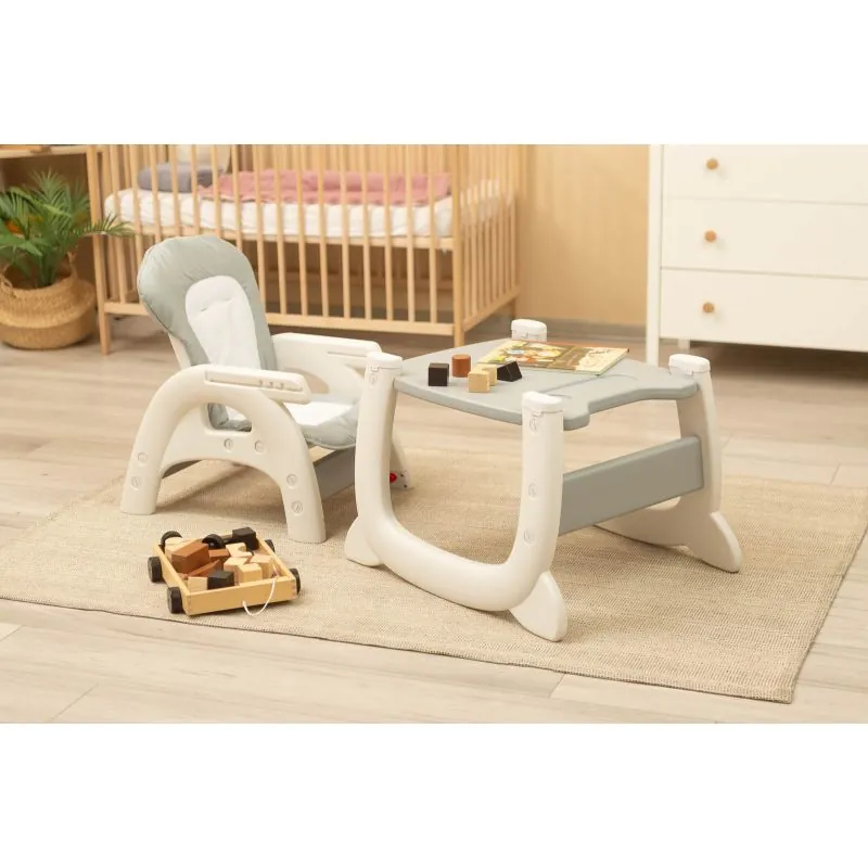 Šo kvalitatīvo, stabilo barošanas krēsliņu bez pūlēm pārveidosiet no augsta barošanas krēsliņa par galdiņu ar krēsliņu;Bērniem no 6 mēnešiem līdz 3-4 gadiem;Izgatavots no augstākās kvalitātes materiāliem;Regulējamas muguras atzveltnes pozīcijas;5 punktu drošības jostas;2 mazgājami noņemami paplātes ar krūzīšu turētāju;Krēsliņa pārvalks no izturīga auduma;Mīksts un ērts bērnam;Noapaļoti krēsliņa stūri aizsargā no sasitumiem;Pateicoties mazajam barošanas krēsliņa svaram, to ir viegli transportēt;Izmēri: 63x65x108 cm. (augsta krēsliņa), 55x46x62 cm. (krēsliņa), 44x55x65 cm. (galdiņa);Krēsliņa svars: 7,6 kg.