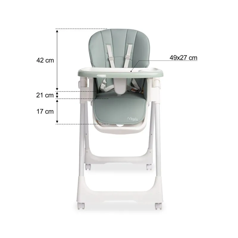 Mīksts apvalks no eko ādas, viegli tīrāms;5 punktu regulējamas drošības jostas;Iespēja noteikt jostas 2 līmeņos sēdekļa aizmugurē;Papildu aizsardzība starp bērna kājām;9 soļu sēdekļa augstuma regulēšana;Atzveltnes regulēšana (uz guļus stāvokli);Noņemams galdiņš ar iespēju pakārt uz sēdekļa atzveltnes;2 pakāpju galdiņa pozīcijas regulēšana (tuvāk-tālāk);Papildu pārklājums uz galdiņa virsmas;3 pakāpju kāju balsta regulēšana;Plaša, stabila pēdu pamatne;Visas četras kājas ar gumijas riteņiem un slēdzeni;Viegli lietojama, gluda regulēšanas un salocīšanas sistēma;Kompakts izmērs, kad salocīts;Stingra un droša darbība Var izmantot guļus;Piemērots bērniem 6-36 mēneši;Maksimālā slodze 15 kg.