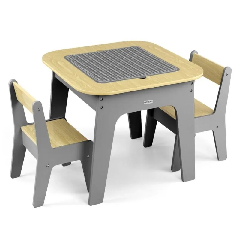 "Olaf Blocks" bērnu mēbeļu komplekts – galds un divi krēsli – ir daudzfunkcionāls komplekts, kas izstrādāts, lai nodrošinātu komfortu un vietu radošām spēlēm un mācībām pašiem mazākajiem.