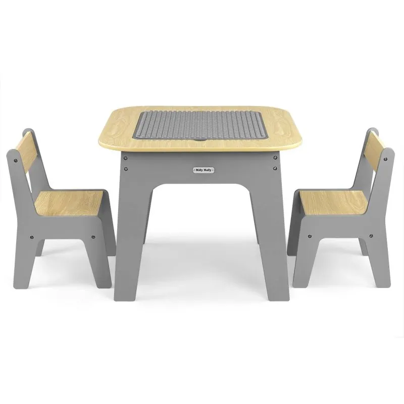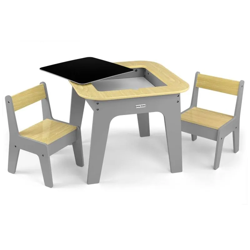 Milly Mally bērnu mēbeļu komplekts Olaf - Galds un divi krēsli, Pelēks Tumši Pelēks