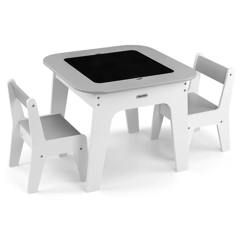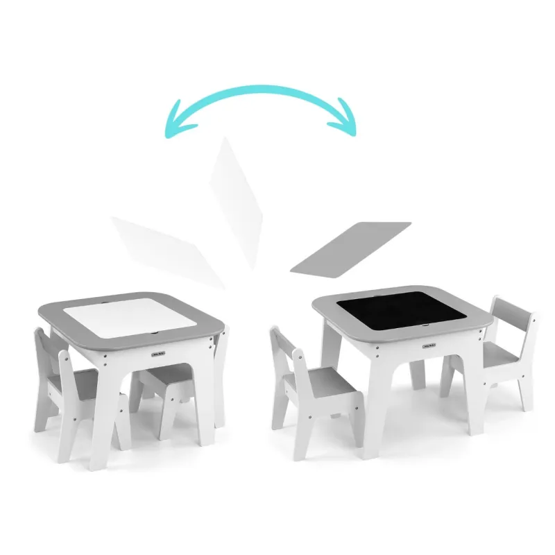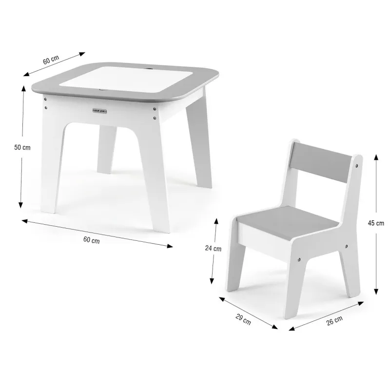 Milly Mally bērnu mēbeļu komplekts Olaf - Galdiņš un divi krēsli, Pelēks