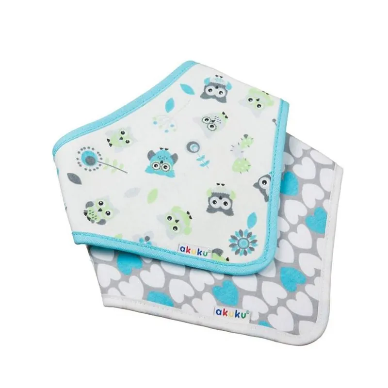Abi slāņi ir no 100% kokvilnas.Ieteicams mazgāt ne augstākā par 40 grādu temperatūrā.Izmēri: 40x20cm.Savas formas un izgatavošanas veida dēļ veic 2 funkcijas.Pārklāj mazuļa drēbītes barošanas laikā.Var izmantot arī kā šalli, kas aizsargā kaklu.Priekšautiņiem ir regulējami stiprinājumi, kas ļauj saīsināt vai pagarināt priekšautiņu garumu, tāpēc tos var izmantot gan mazuļiem, gan lielākiem bērniem.Izstrādājums ir izgatavots no diviem slāņiem 100% kokvilnas materiāla.Apakšējais slānis ir no frotē kokvilnas, bet augšējais – no mīkstas kokvilnas.Dekorēts ar krāsainiem bērnu rakstiem.Pie bērnu drēbēm sader plaša krāsu gamma, tāpēc priekšautiņi var būt praktisks bērnu apģērbu rotājums.