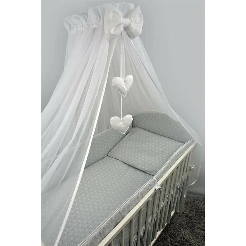 Baldahīns no tills;Segas pārvalks 120/90 cm;Spilvens 40/60 cm;Segas pārvalks 120/90 cm;Spilvendrāna 40/60 cm;Gultas malas aizsargs 360 cm (ap visu gultas perimetru).