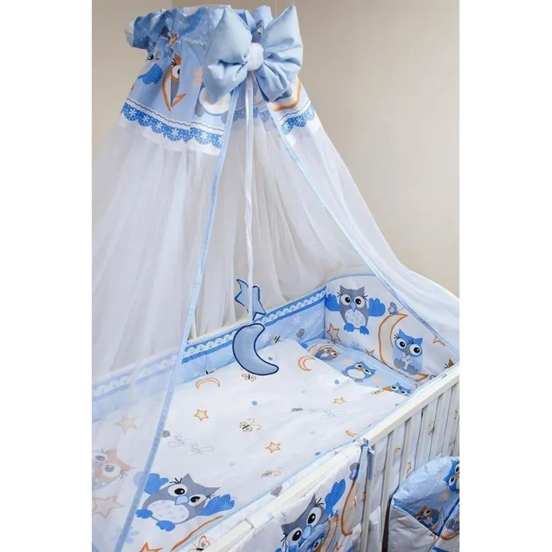 Ankras 6 daļu gultas veļas komplekts "Pūces" Zils