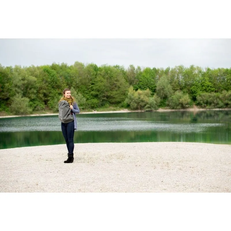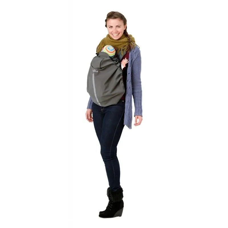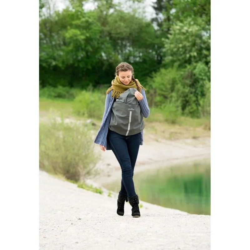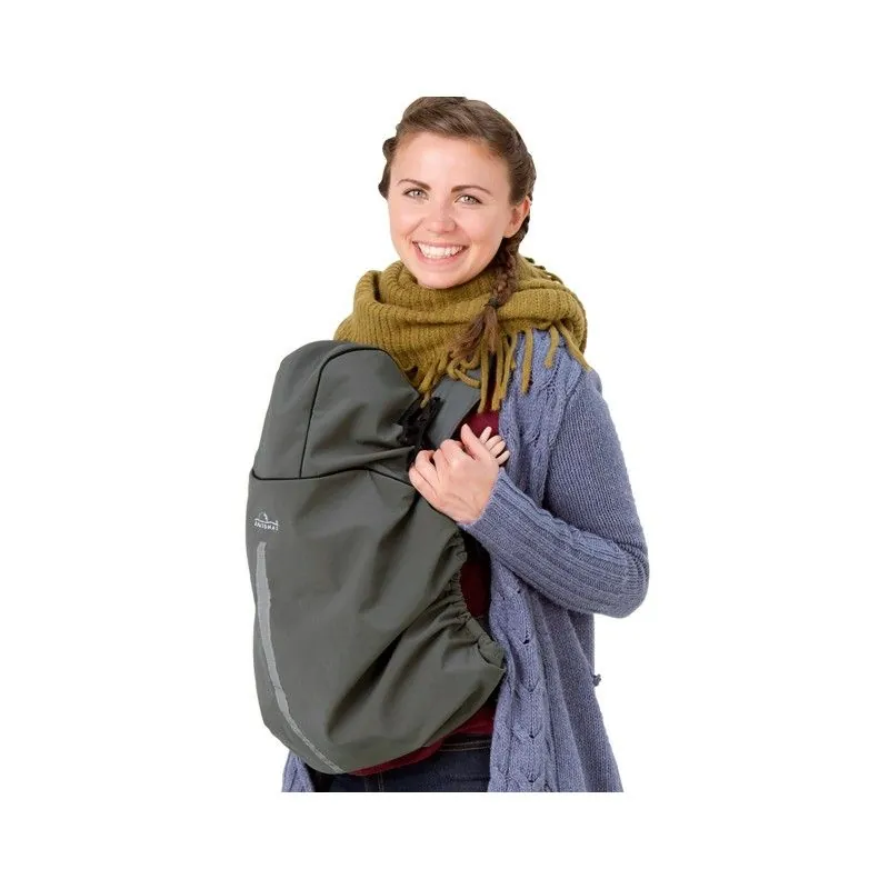 Piemērots VISU modeļu nēsātājām, Mei Tai, nēsāšanai uz muguras un priekšā, kā arī nēsāšanai, kad bērns ir vērsts ejot virzienā.Komplektā ir maisiņš, kurā salocīt nenēsājamo mēteli.Softshell virsma aizsargā ne tikai no vēja – tā ir ūdensizturīga.