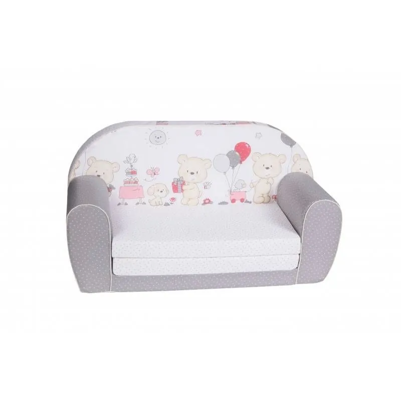 Gaišs dīvāniņš - "Lāča dzimšanas diena". Mīkstais dīvāniņš ir viegls, izgatavots no poliuretāna putām un kokvilnas materiāla. Pārvalks ir noņemams un var tikt mazgāts. Izvelkamais dīvāniņš ļaus bērniem ne tikai ērti apsēsties, bet arī atgulties atpūtai. Šis dīvāns nav paredzēts ilgstošai gulēšanai.Ieteicams bērniem no 9 mēnešiem līdz 5 gadiem.Izmēri 78 x 42 x 36 cm.Dīvāns izvelkas. Gulēšanai šis dīvāniņš nav paredzēts. Izvilktā dīvāna garums 80 cm.Var mazgāt 30 grādu temperatūrā.