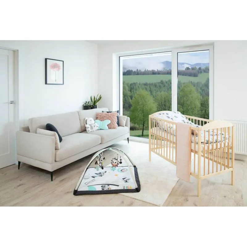 Priežu gultiņa;Apaļie stieņi nodrošinās bērna drošību;Regulējams pamatnes augstums (3 pozīcijas);Izņemami stieņi, lai bērns, kad paaugsies, varētu pats iekāpt/izkāpt no gultiņas;Matrača izvēli gultiņai varat veikt ŠEIT