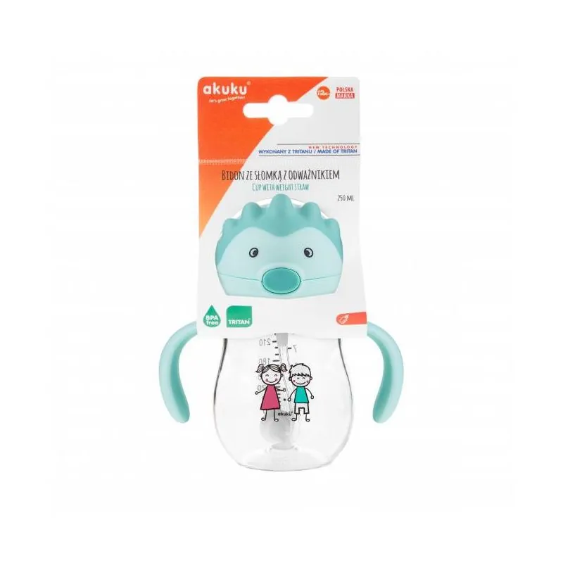 Nenoplūstošs mācību krūze izgatavota no Tritan materiāla. Svars nodrošina, ka var dzert no jebkuras pozīcijas. Hermētisks vāks aizsargā pret izšļakstīšanos un aizsargā salmiņu no netīrumiem.