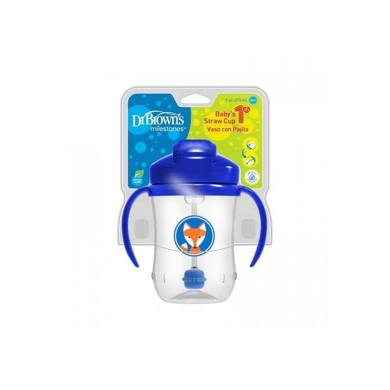 DR.BROWN'S pudelīte ar salmiņu un svaru 270ml, zila
