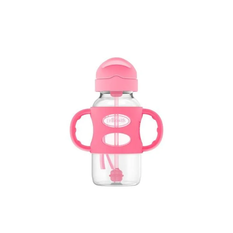DR.BROWN'S pudelīte ar platu kaklu ar salmiņu un svaru, rozā, 270 ml