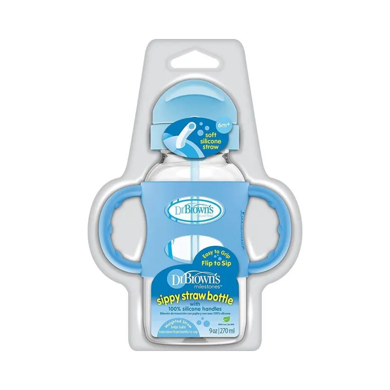DR.BROWN'S pudelīte ar platu kaklu ar salmiņu un svaru, zila, 270 ml