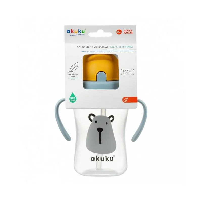 Akuku krūze ar salmiņu, 300ml, ar diviem rokturiem, BEAR A0203