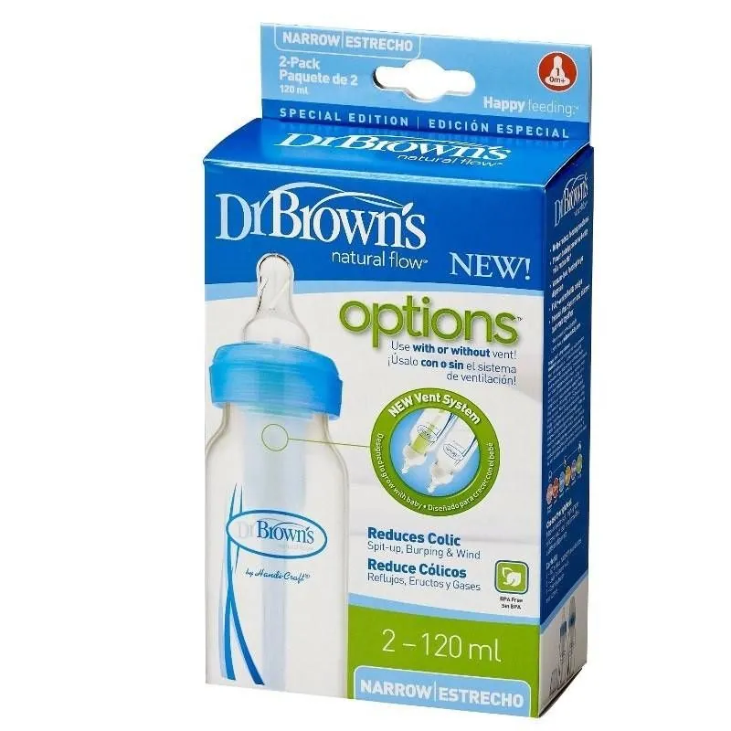 DR.BROWN'S pudelīši OPTIONS+ ar šauru kakliņu, 120ml, zili, 2 gab.